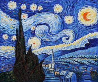 (expressie) Hij gebruikt de kleur blauw om de kracht uit te drukken.