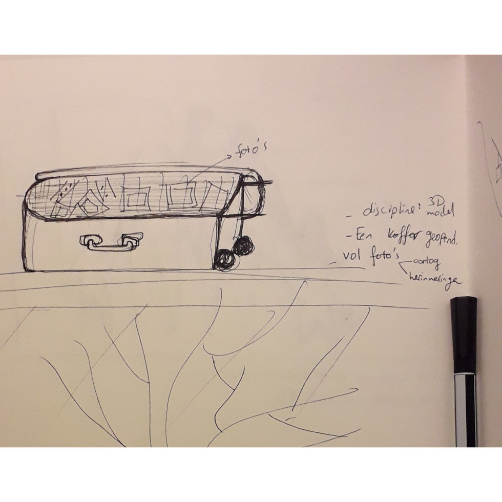 Hierboven staan een aantal schetsen van verschillende ideeën over hoe het onderwerp verwerkt kan worden. Bij elke schets staat de discipline vermeld. Ook staat er een beknopte toelichting over wat er in de tekening staat en wat het voorstelt. De keuze voor het eindwerk is gevallen op de ene laatste schets van de hierboven schetsen. Namelijk de boot met daarin stukjes puzzel. De reden hiervoor is dat het een van de weinigen die beide disciplines, beeldend en 3d modelletjes, zo goed mogelijk combineert.